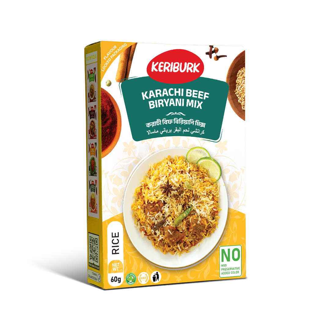 Experience Karachi's vibrant flavors effortlessly with our beef biryani pre-mix. Marinate, layer with rice, and simmer for tender, aromatic perfection, and authentic Karachi taste without the hassle.